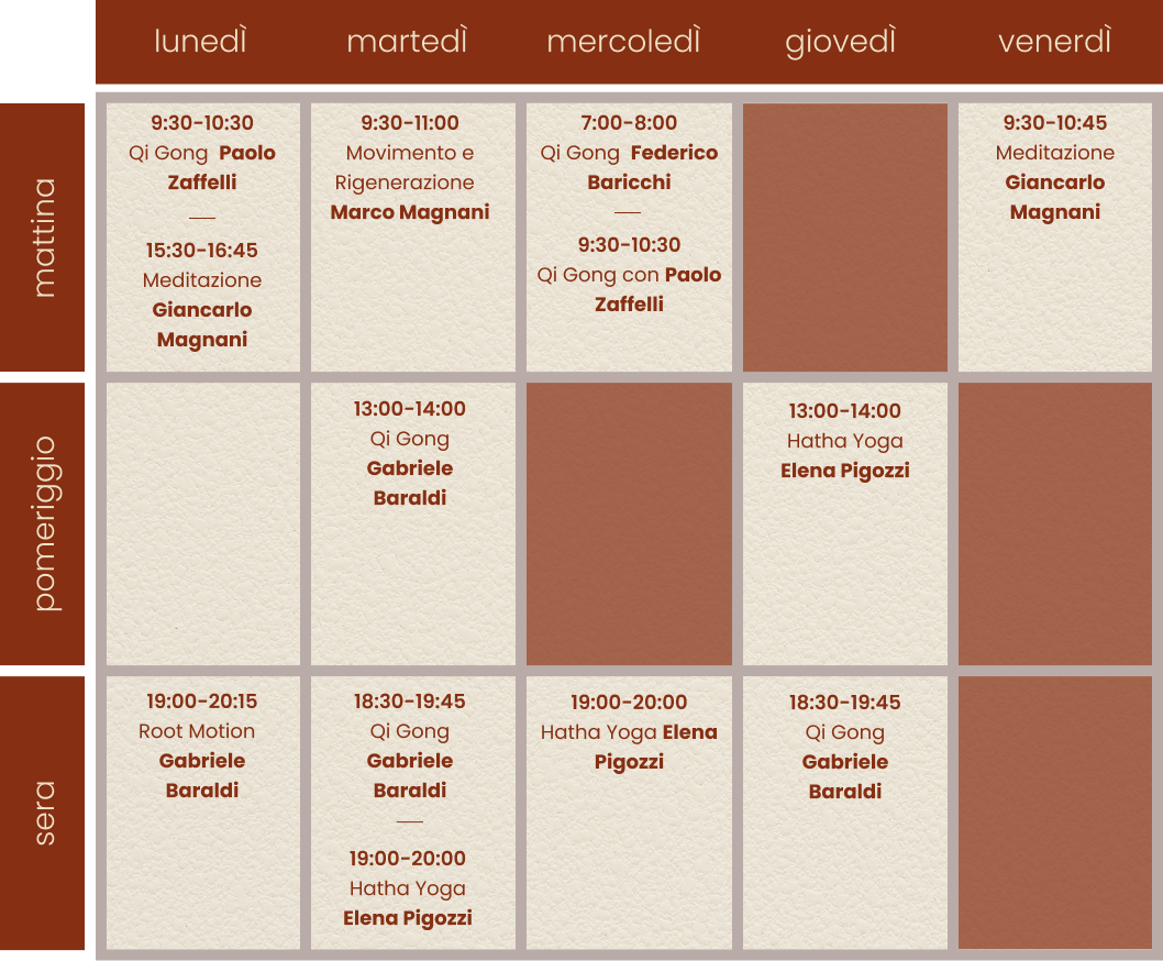Per partecipare ai corsi, ti consigliamo di vestirti con abiti comodi che ti permettano di muoverti liberamente. Ti invitiamo ad arrivare almeno 10 minuti prima dell’inizio della prima lezione di prova.